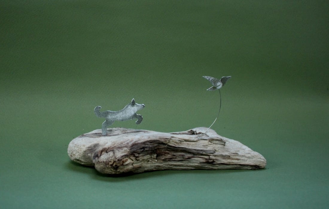 Length and depth measurements refer to the piece of driftwood and are approximate (wood is wiggly). The height refers to the driftwood plus the tallest piece of pewter. The figures themselves are two-dimensional and are approximately 6mm deep.