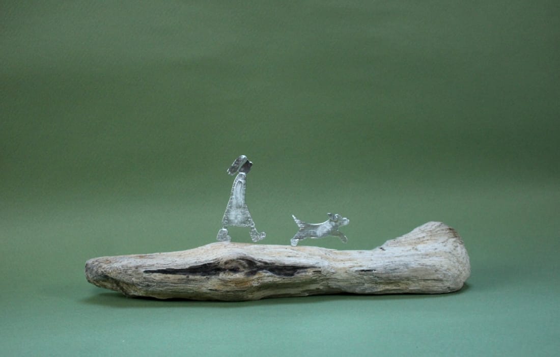 Length and depth measurements refer to the piece of driftwood and are approximate (wood is wiggly). The height refers to the driftwood plus the tallest piece of pewter. The figures themselves are two-dimensional and are approximately 6mm deep.